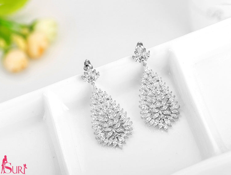 Bông Tai Đá Trắng Hình Tháp Cao Cấp