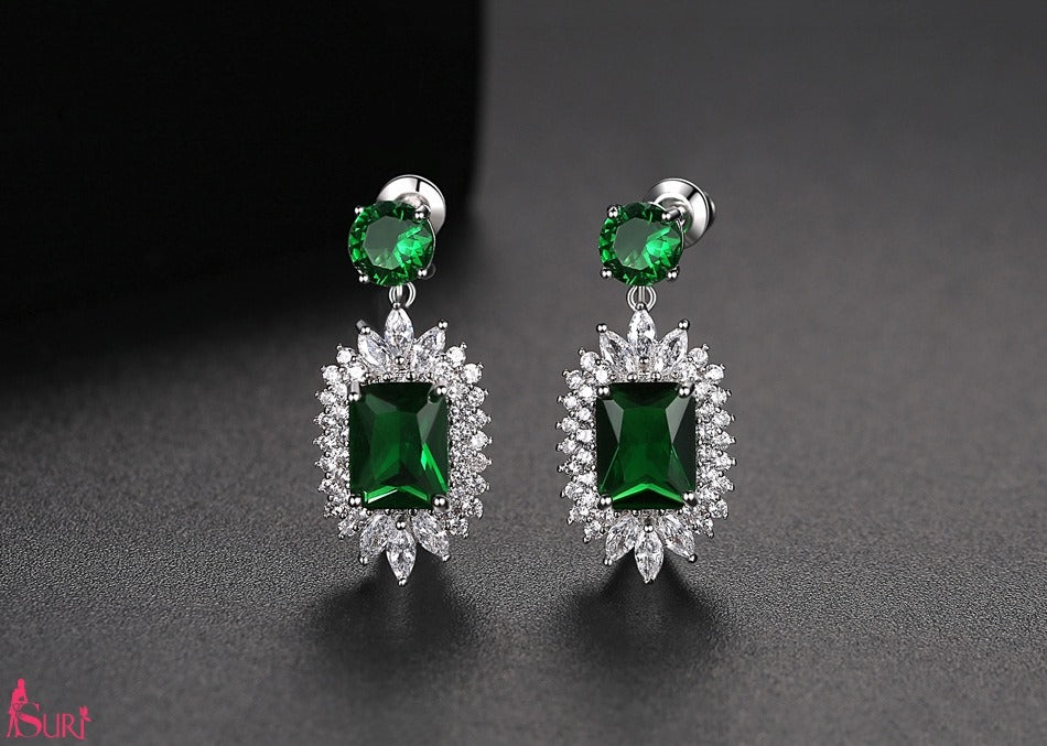 Bông Tai Đá xanh Viền Đá Trắng Xung Quanh