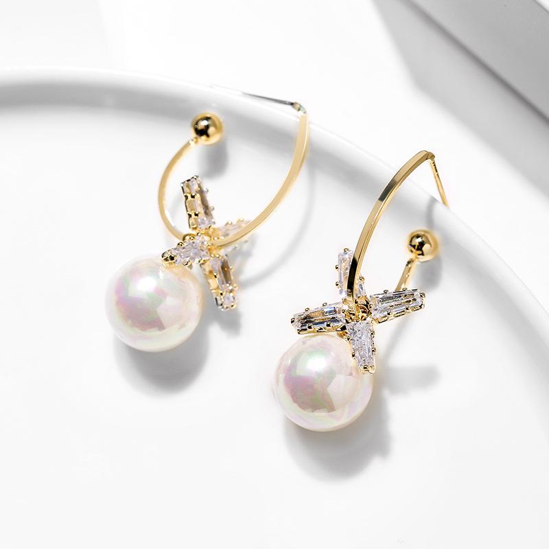 Bông Tai Khoen Đá 4 Cánh Đính Hạt Trai