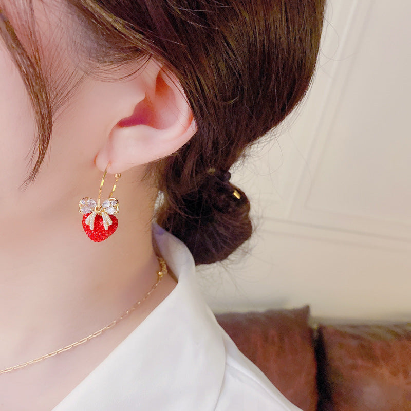 Bông Tai Khoen Khuyết Trái Tim Đỏ Phối Nơ Đá Ngọc Trai