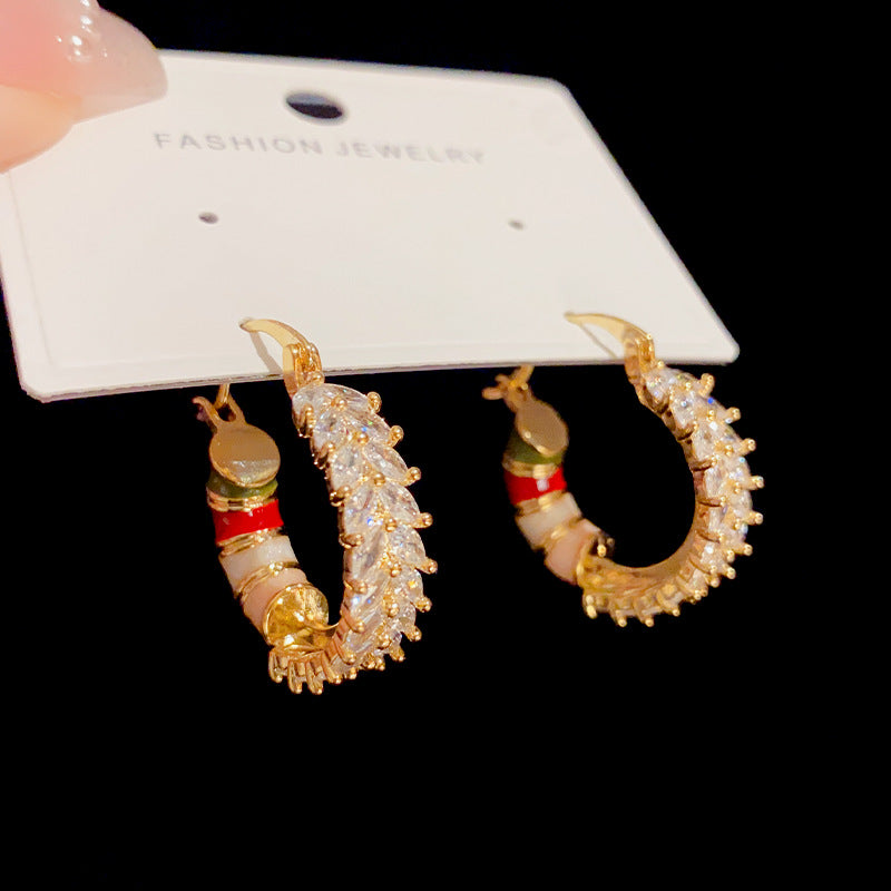 Bông Tai Khoen Lá Đá Trắng Phối Tròn Sắc Màu