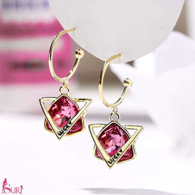 Bông Tai Khoen Tam Giác Vàng Đá Màu