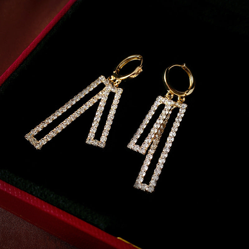 Bông Tai Khoen Tòn Teng Hình Học Chữ Nhật Đôi Đính Đá Trắng