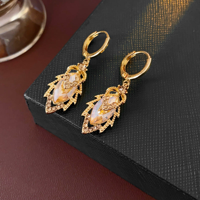 BÔNG TAI KHOEN TÒN TENG HÌNH LÁ PHONG ĐÍNH ĐÁ NÂU TRÀ SANG TRỌNG