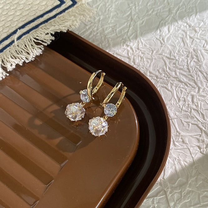 Bông Tai Khoen Tòn Teng Xoắn Phối Đá Lập Phương Siêu Sáng