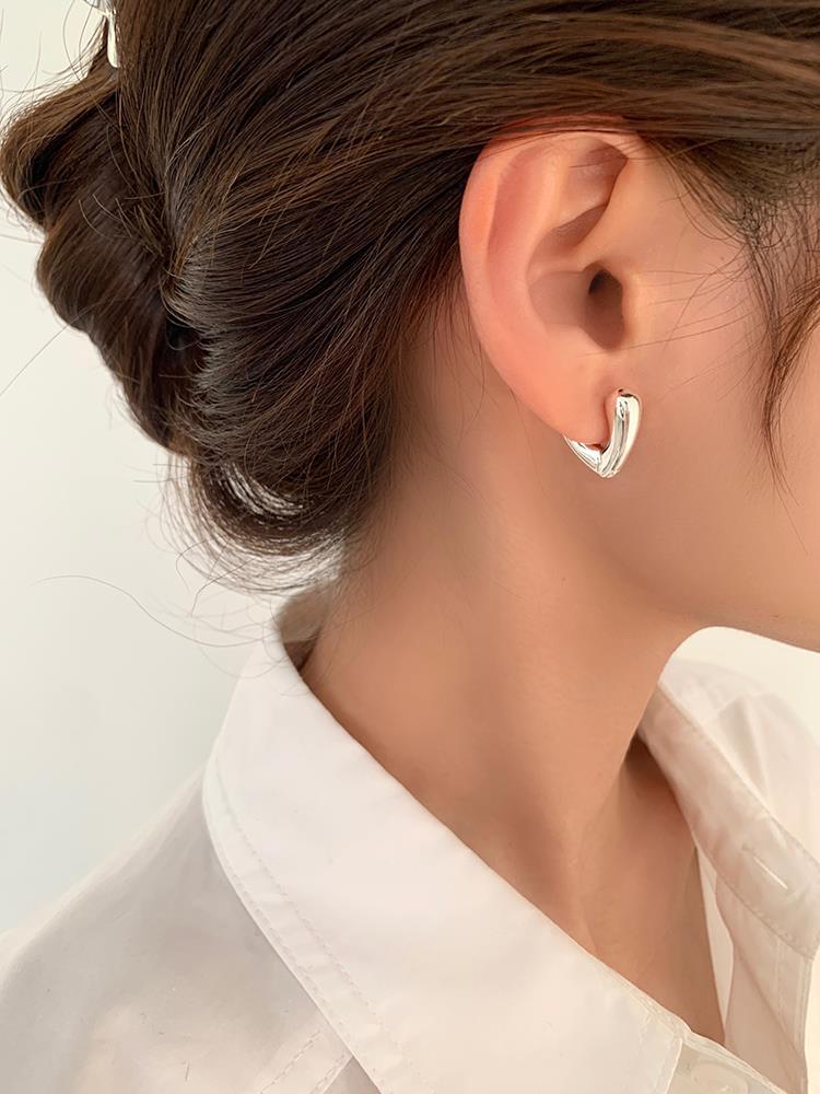 Bông Tai Khoen Trái Tim Bạc Sát Tai Cá Tính