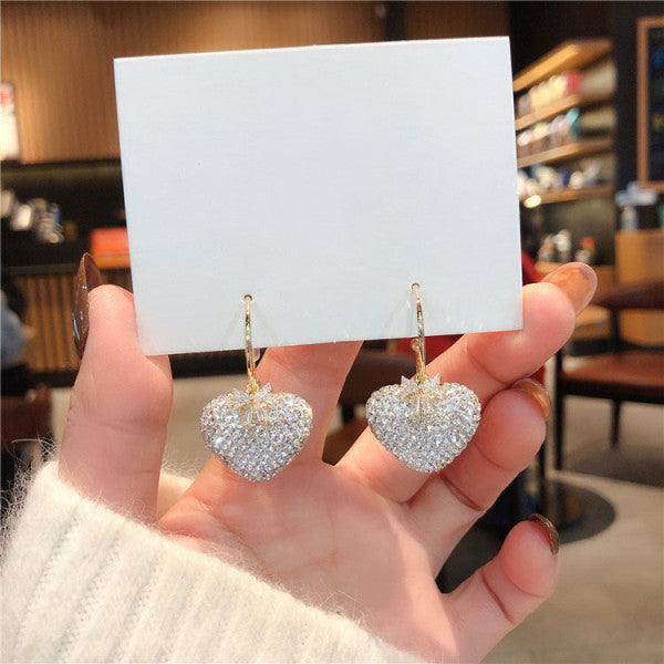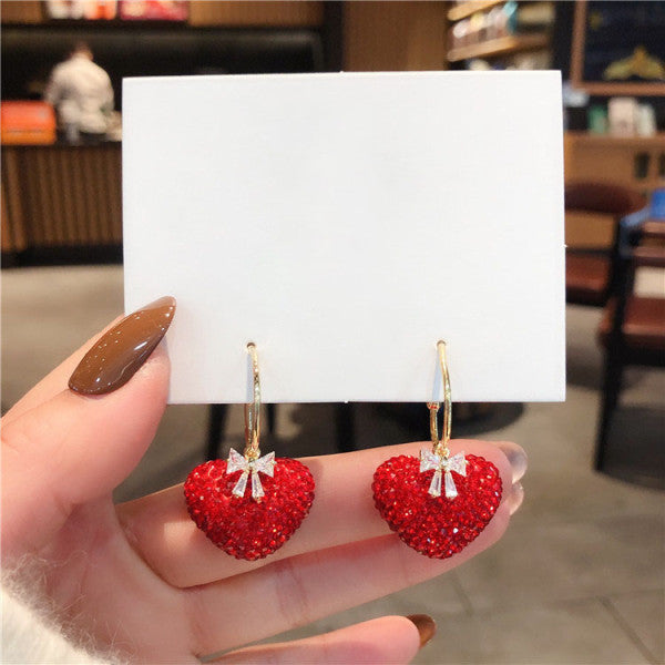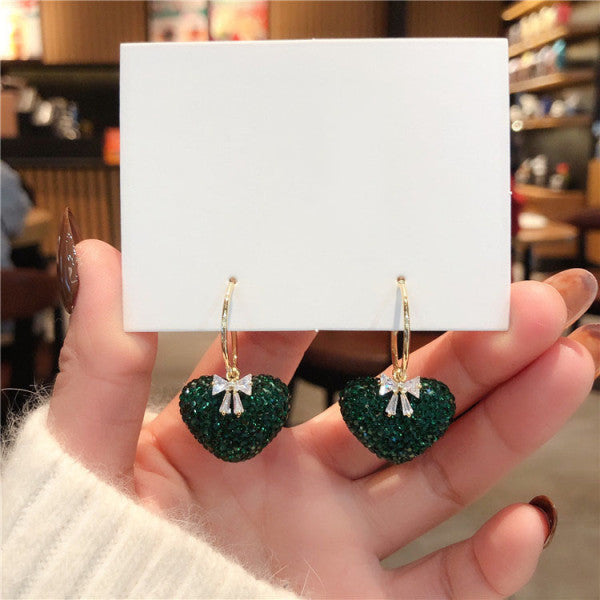 Bông Tai Khoen Trái Tim Đá Màu Đính Nơ Đá Nhỏ