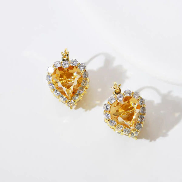 Bông Tai Khoen Trái Tim Đá Màu Trà Viền Đá Trắng