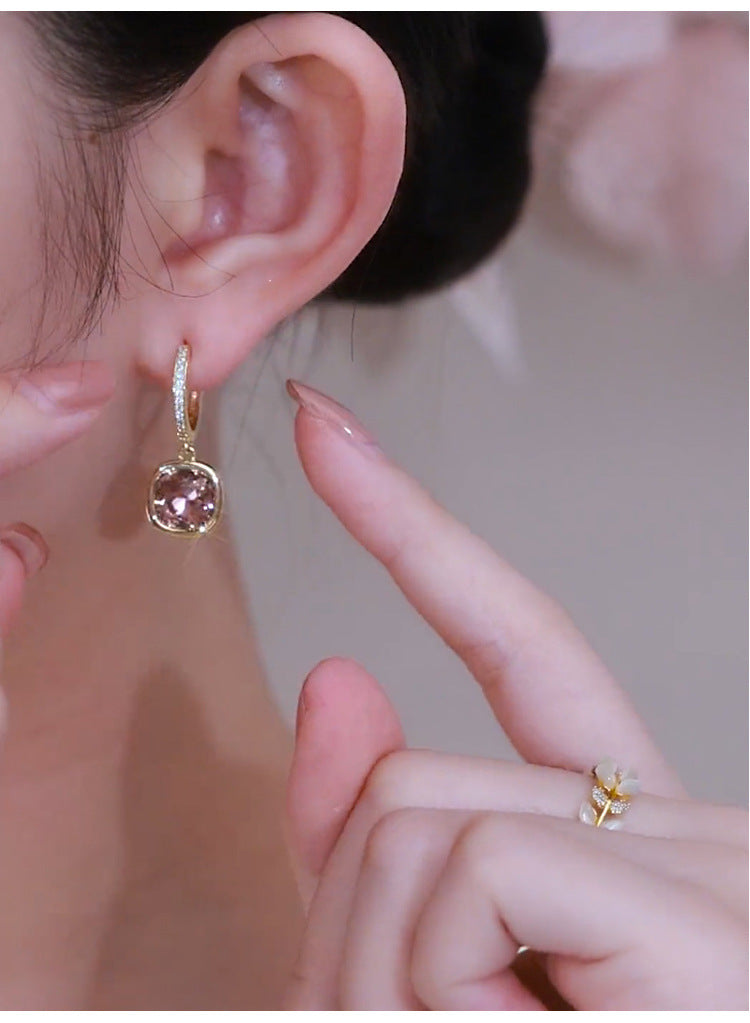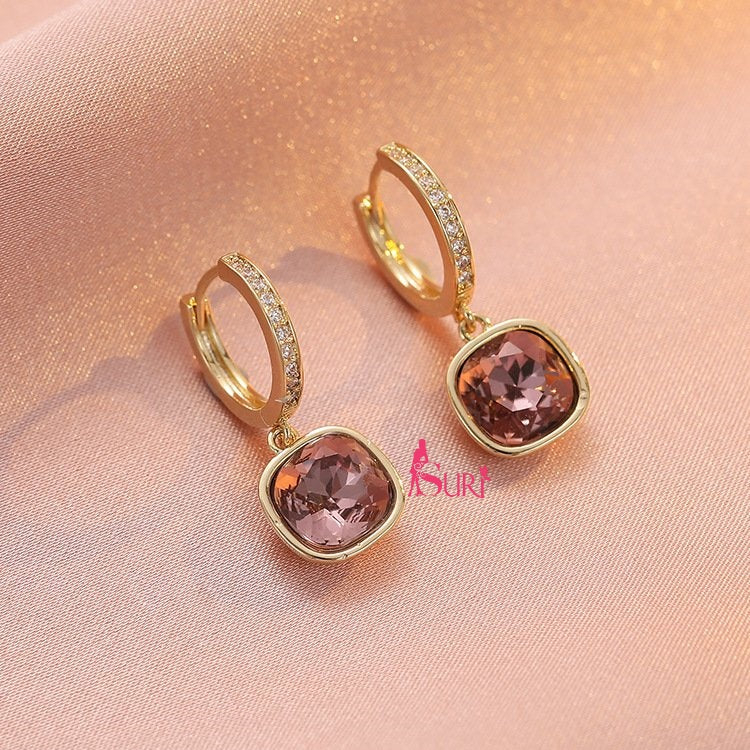 Bông Tai Khoen Tròn Đính Đá Vuông Tím Xinh Xắn