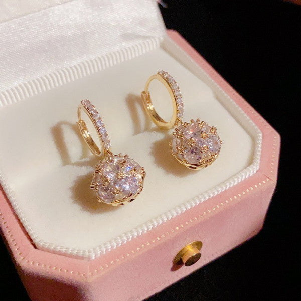 Bông Tai Khoen Tròn Phối Hình Cầu Đá Sáng
