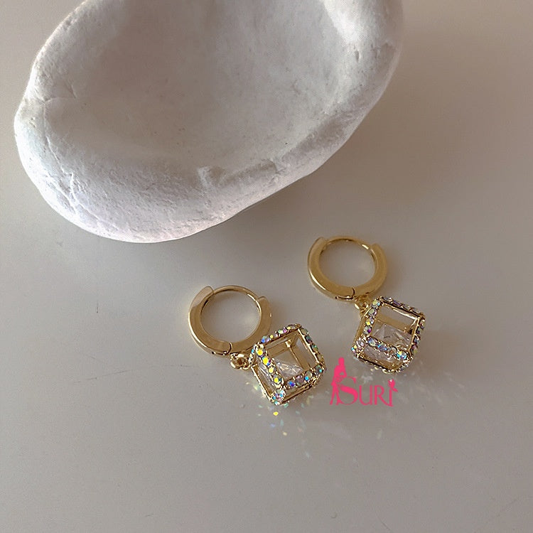 Bông Tai Khoen Tròn Phối Khối Lập Phương Đính Đá