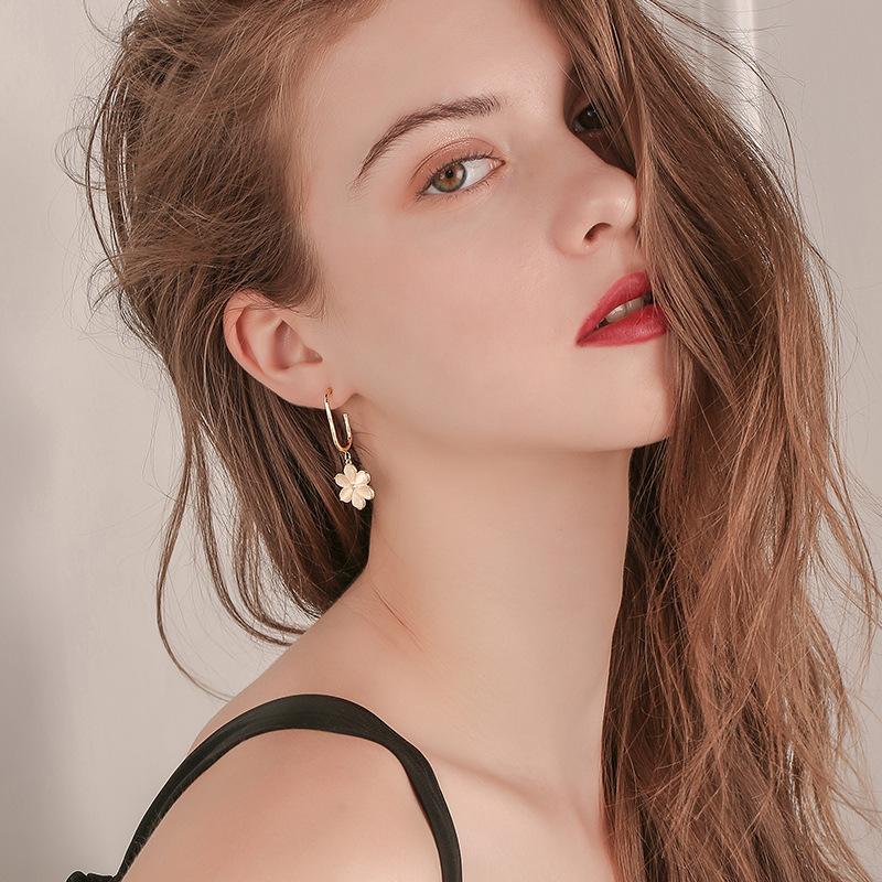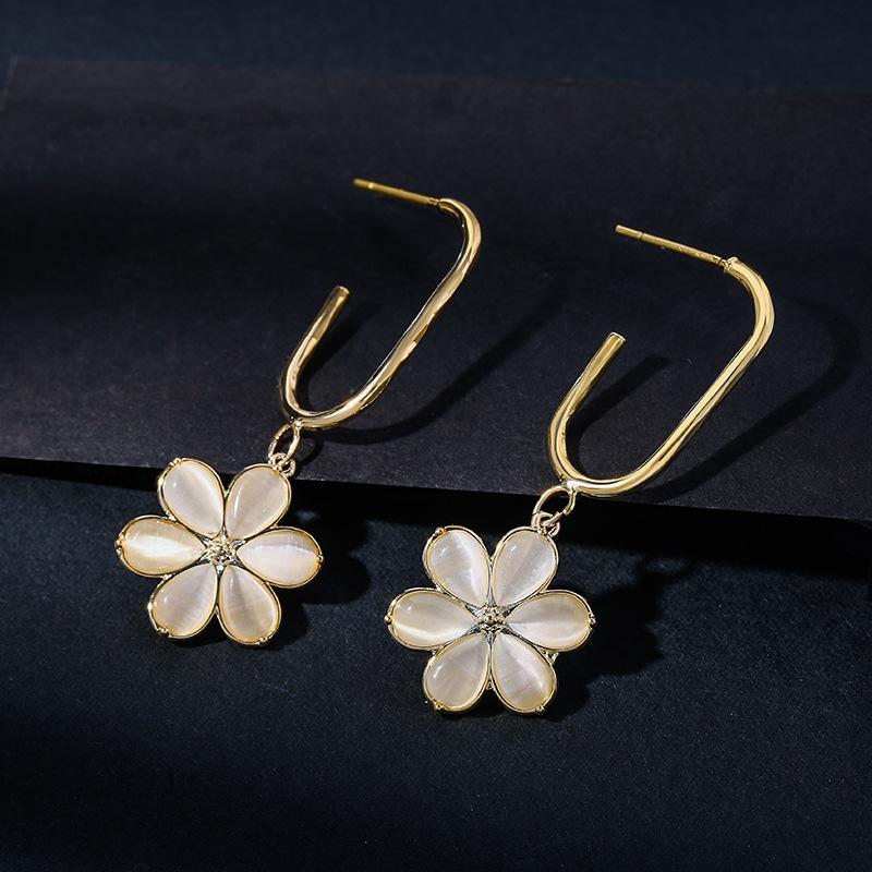 Bông Tai Khoen Vuông Hoa Đá Mắt Mèo 6 Cánh