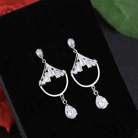 Bông tai kiểu dáng bán nguyệt đính đá tòn teng
