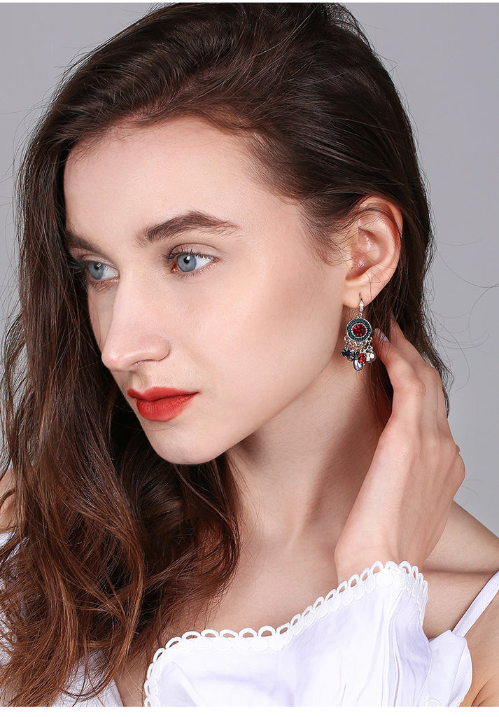 Bông Tai Kiểu Dáng Dreamcatcher Đá Màu