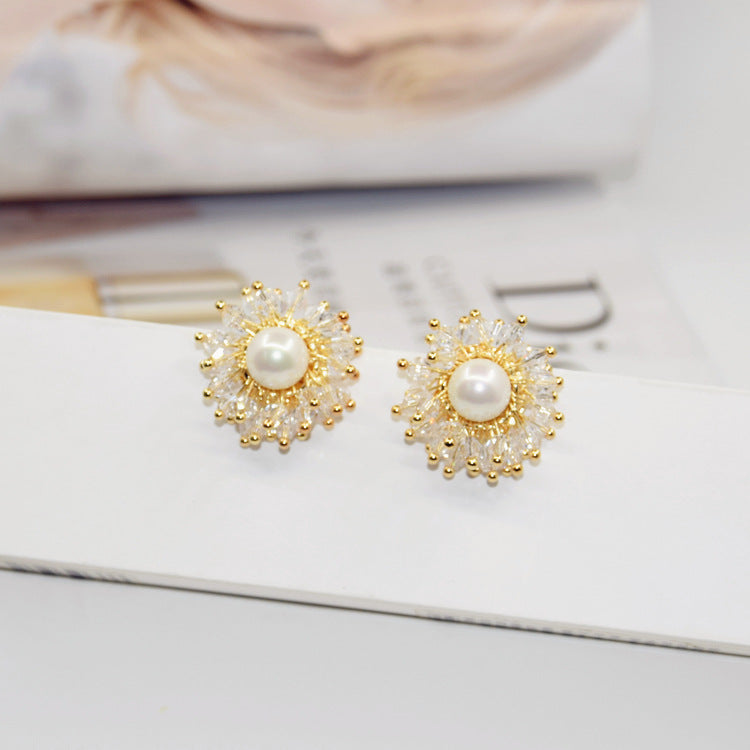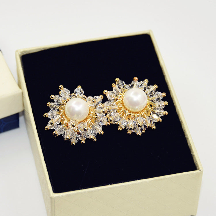Bông tai ngọc trai sát tai đính pha lê