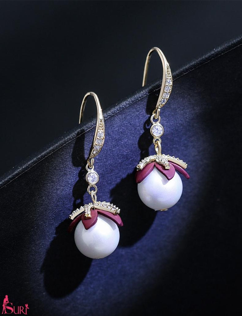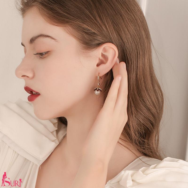 Bông Tai Nụ Hoa Ngọc Trai Trắng Dạng Móc