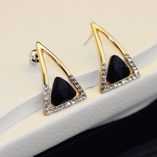 Bông Tai Tam Giác Đính Đá Đen