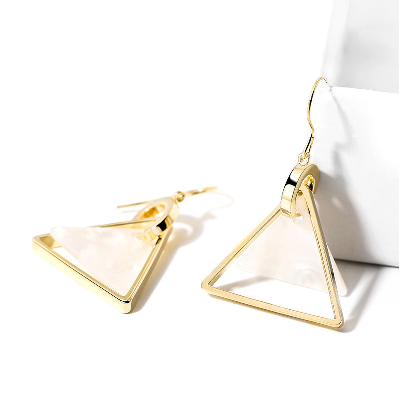 Bông Tai Tam Giác Xà Cừ Viền Vàng Dạng Móc