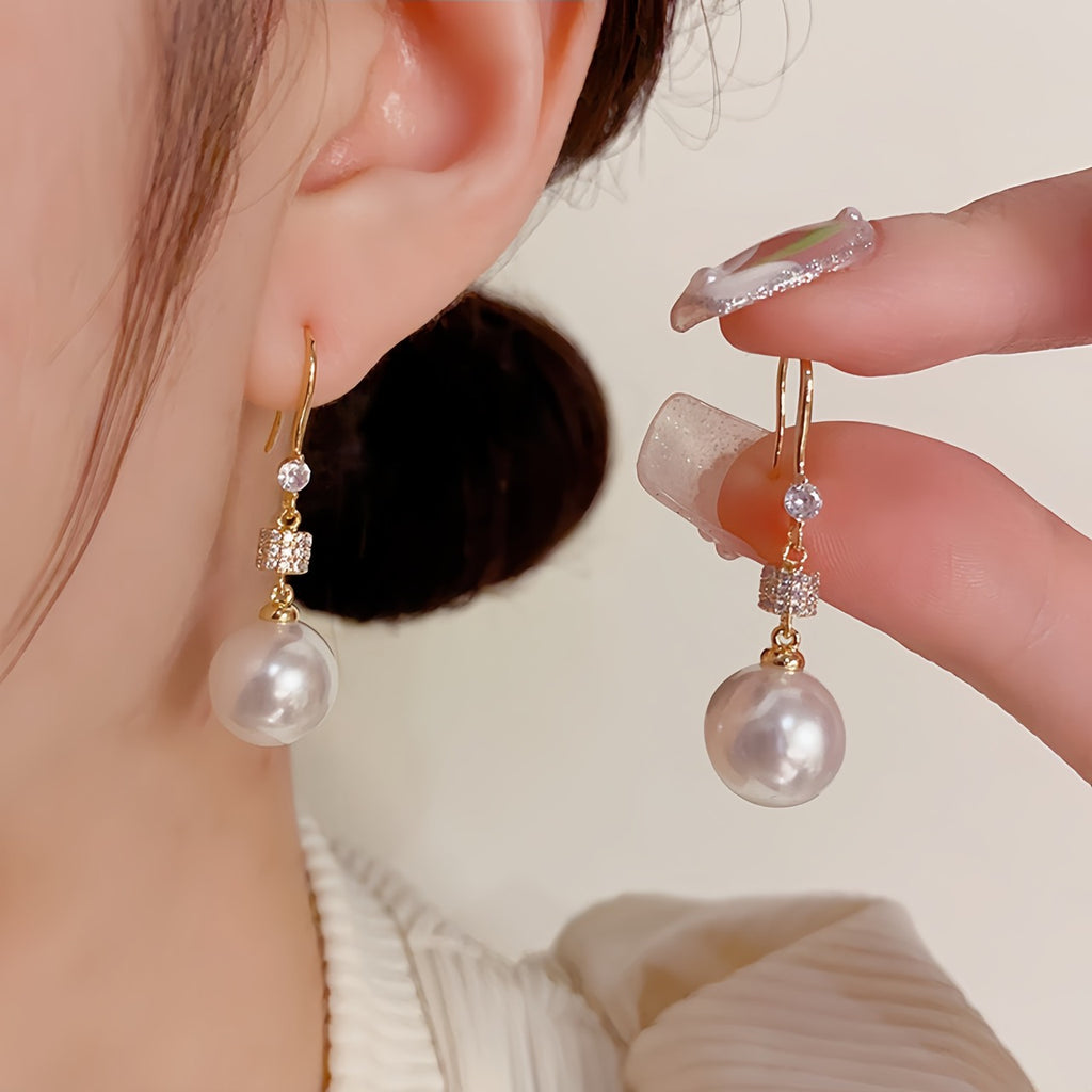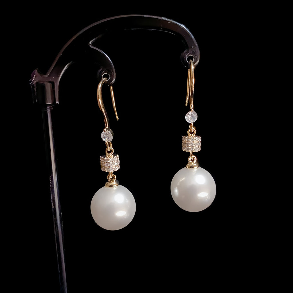 Bông Tai Tòn Teng 1 Hạt Trai Trắng Phối Shape Đá Trắng Dạng Móc