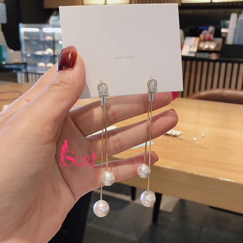 Bông Tai Tòn Teng 2 Ngọc Trai Dây Uốn