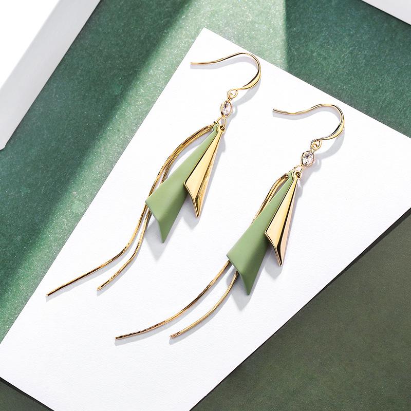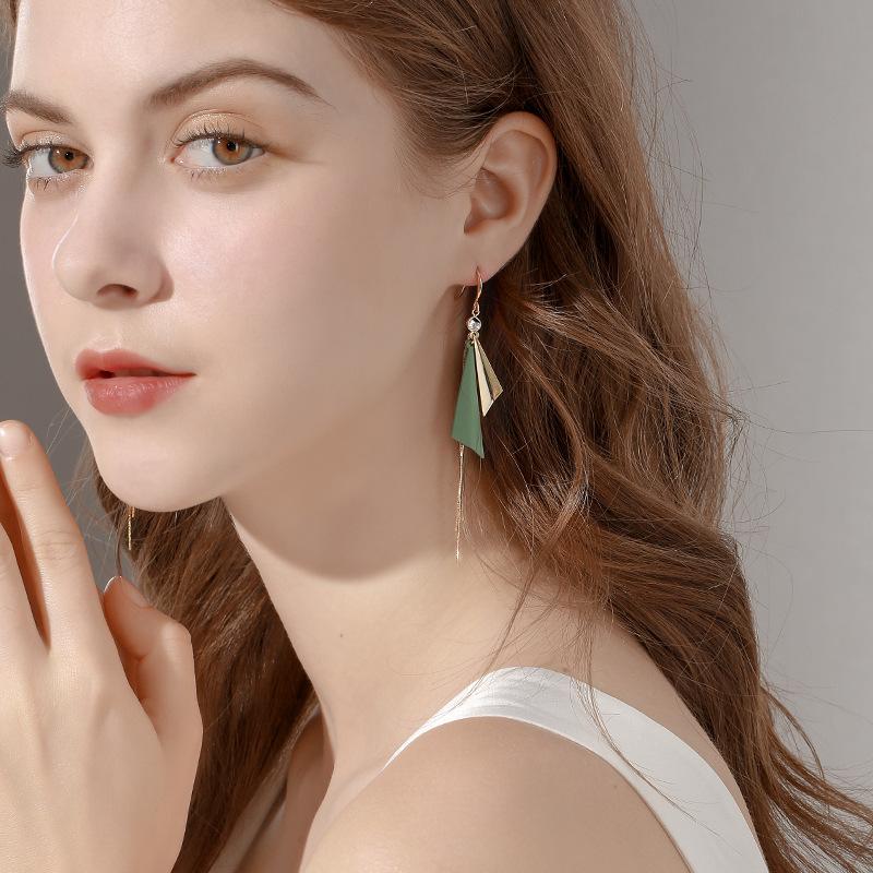 Bông Tai Tòn Teng 2 Tam Giác Vàng Xanh Dạng Móc