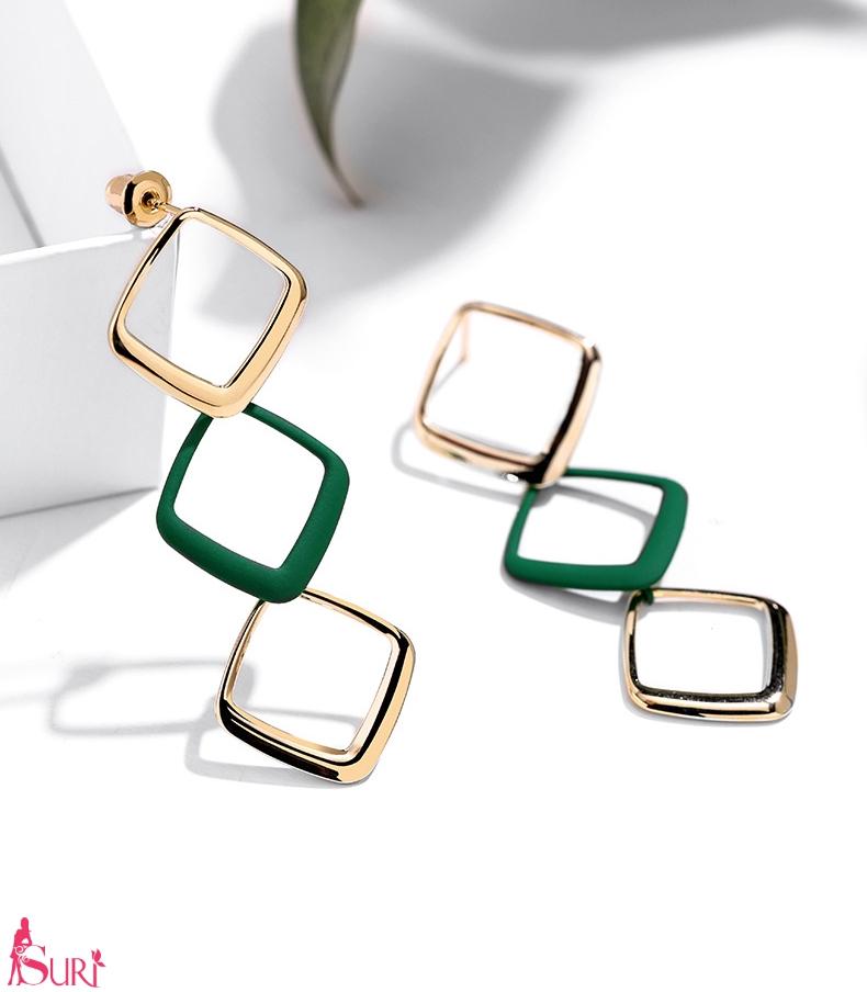 Bông Tai Tòn Teng 3 Hình Thoi Vàng Xanh