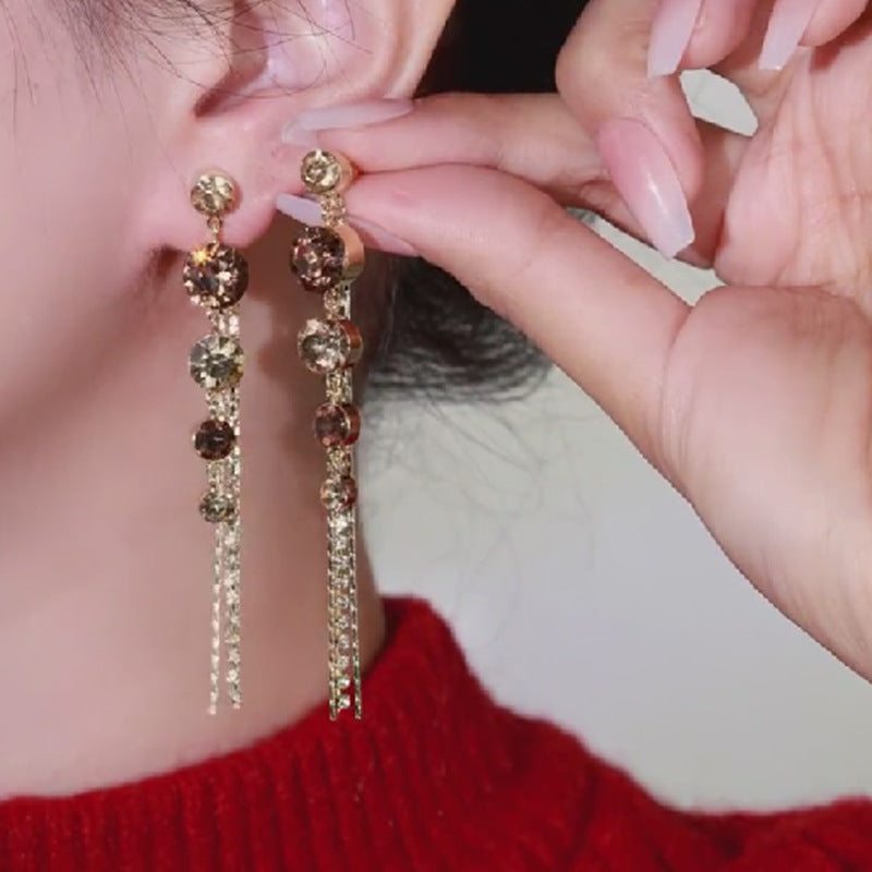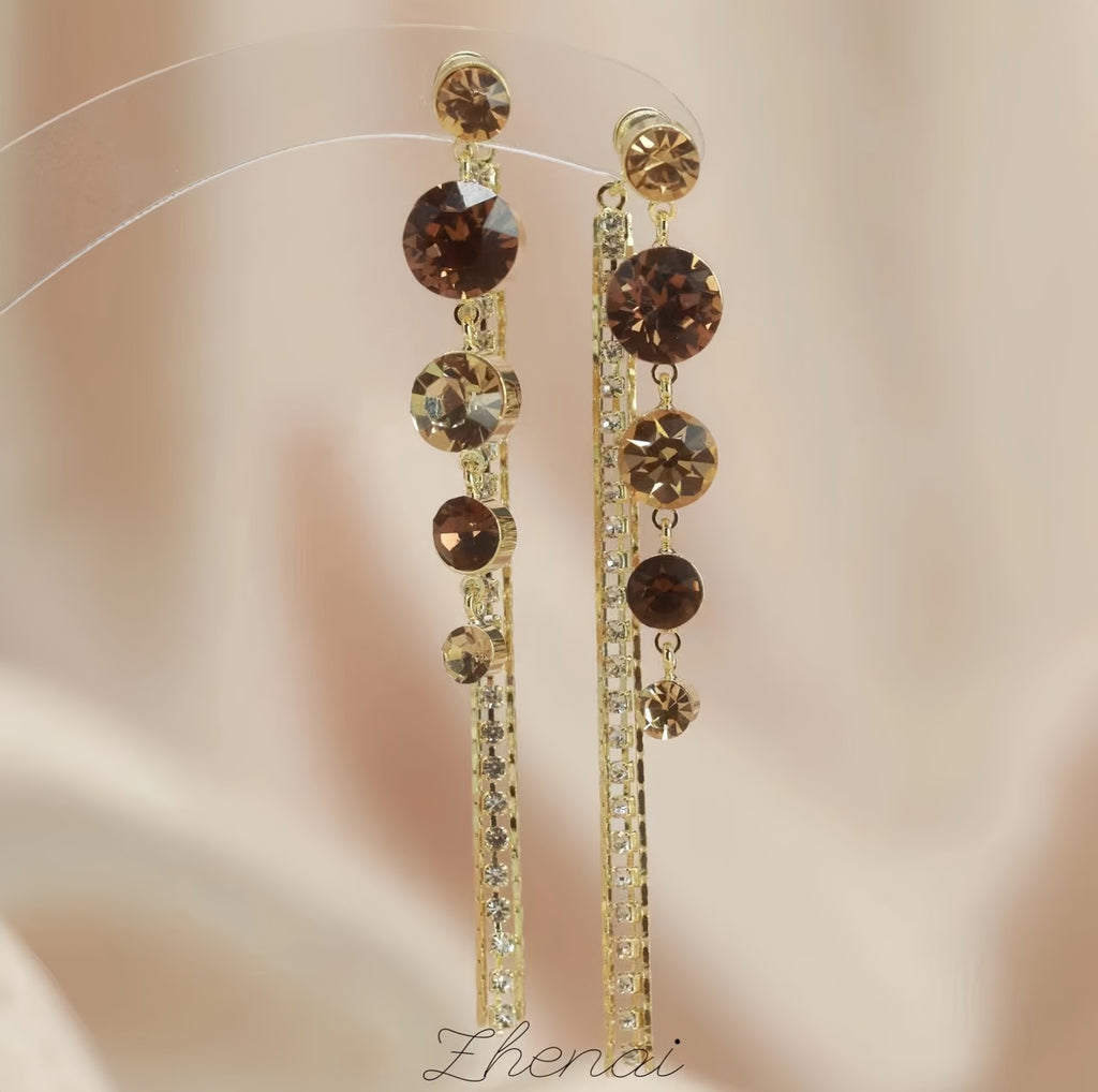 Bông Tai Tòn Teng 5 Hạt Đá Nâu Tua Rua 2 Kiểu