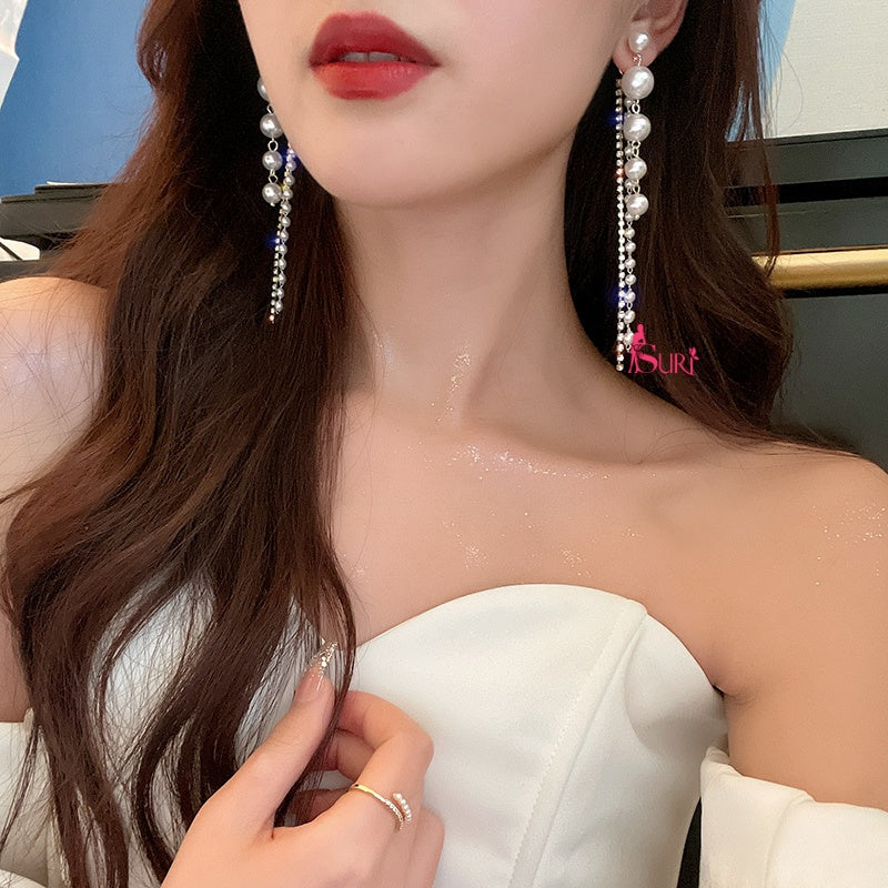 Bông Tai Tòn Teng 5 Hạt Trai Trắng Phối 2 Sợi 2 Kiểu Siêu Sang