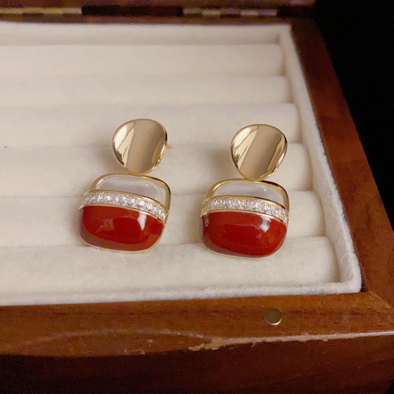 BÔNG TAI TÒN TENG BẢN TRÒN HÌNH VUÔNG GIFT ĐÍNH ĐÁ PHỐI ĐỎ NỔI BẬT