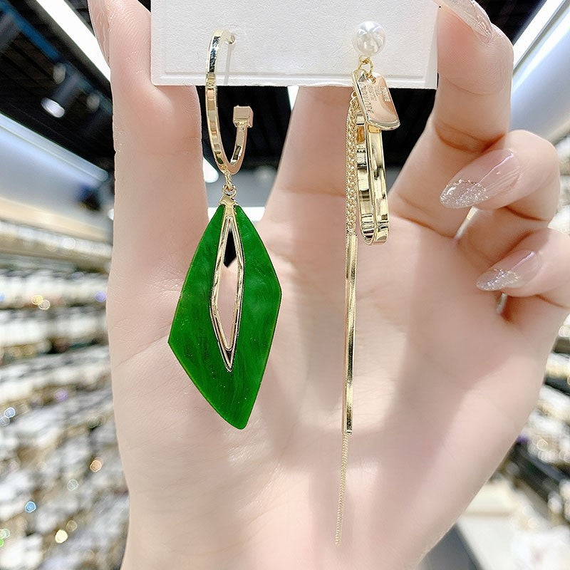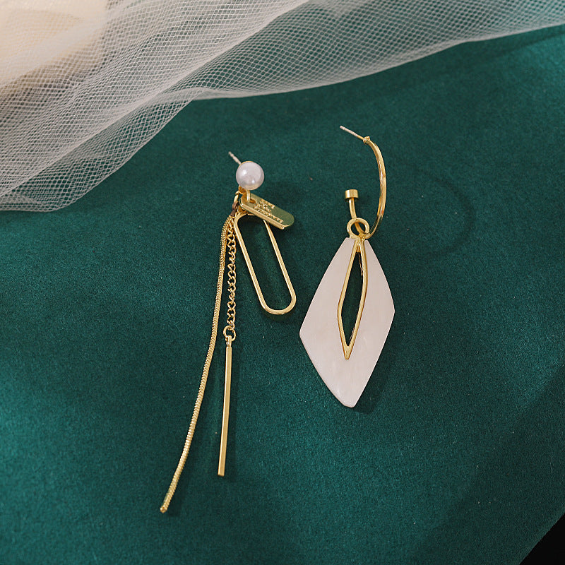 Bông Tai Tòn Teng Bất Đối Xứng Hình Thoi Màu Cá Tính