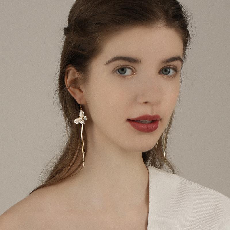 Bông Tai Tòn Teng Bướm Nạm Đá Tua Rua Dạng Móc