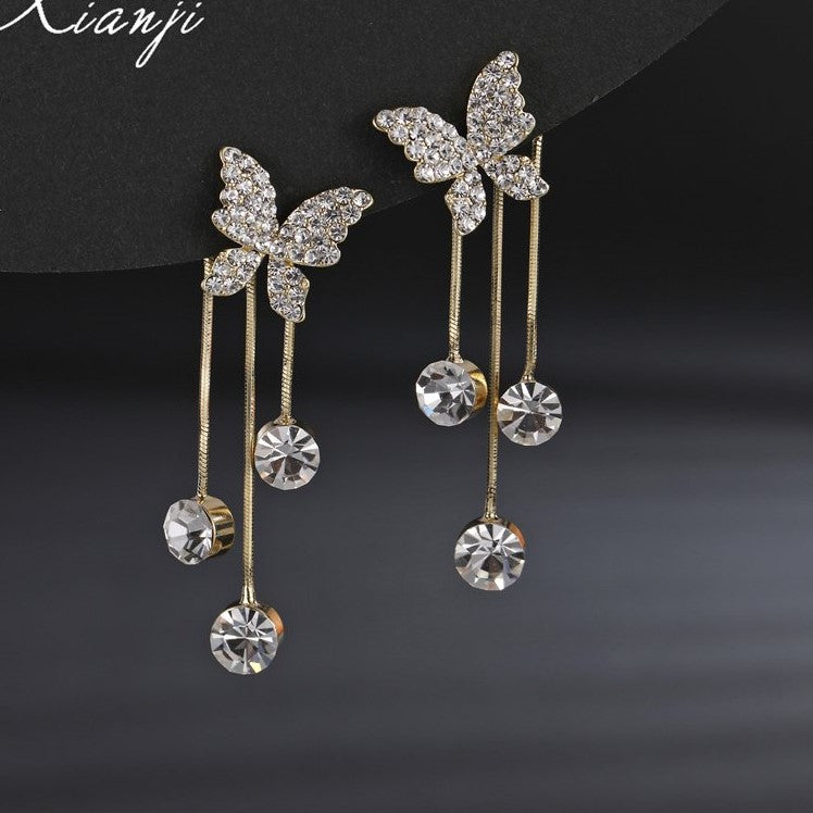 Bông Tai Tòn Teng Cánh Bướm Đính Đá Phối Tua Rua 3 Hạt Cao Cấp