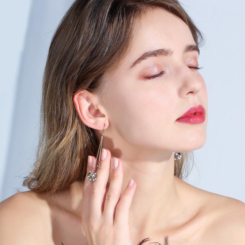 Bông Tai Tòn Teng Cầu Đá Xám 2 Sợi Dạng Móc