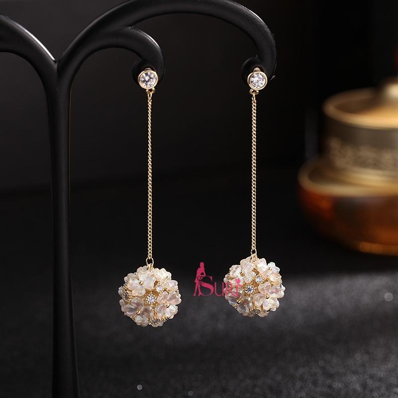Bông Tai Tòn Teng Chùm Hoa Xà Cừ Dạng Móc