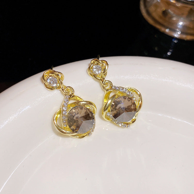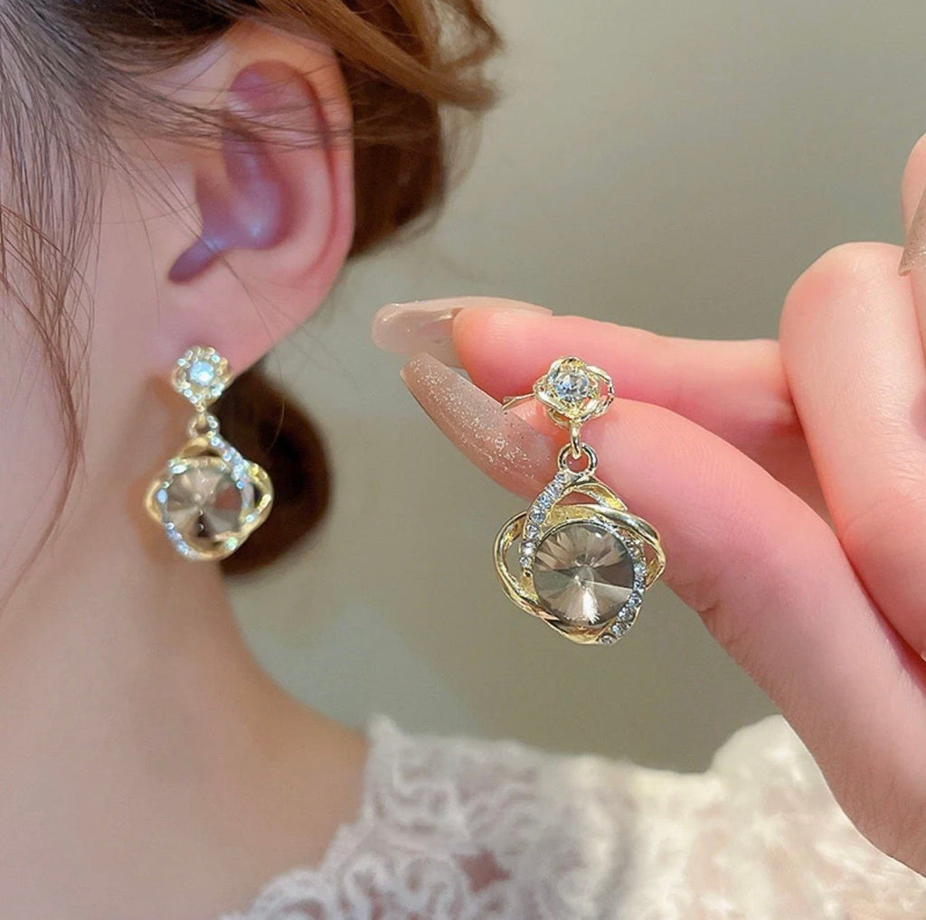 Bông Tai Tòn Teng Đá Ẩn Viền Xoắn Đá Trắng Thời Trang