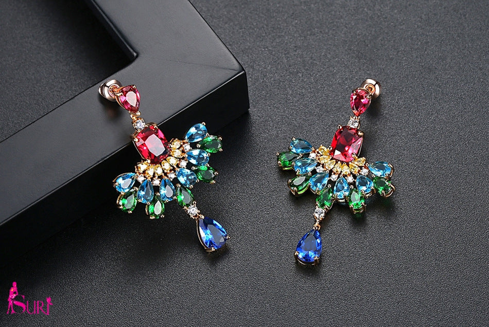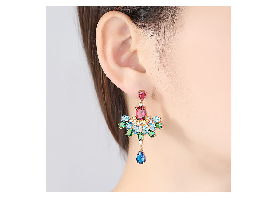 Bông tai tòn teng đá đa sắc màu