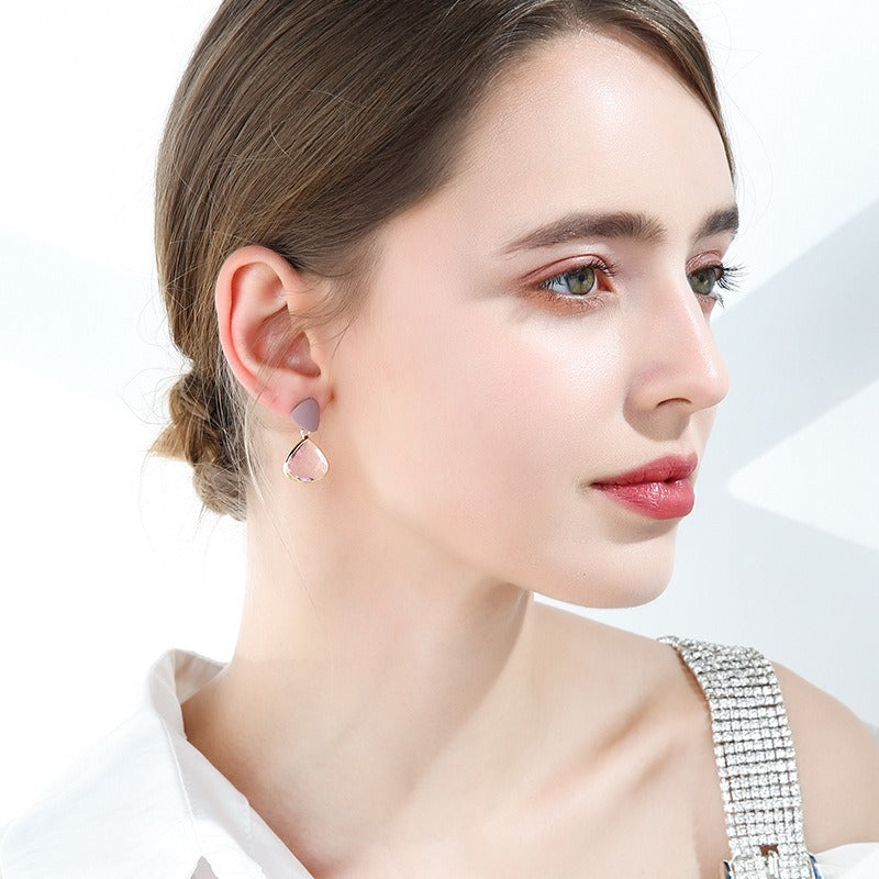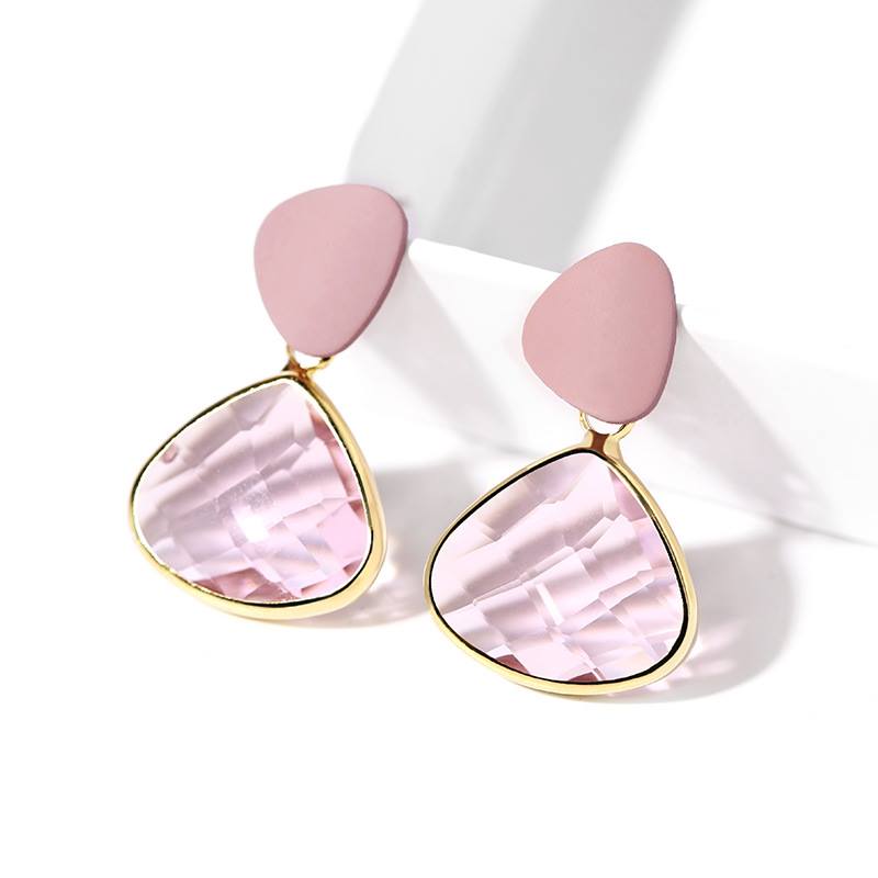 Bông Tai Tòn Teng Đá Hồng Nữ Tính