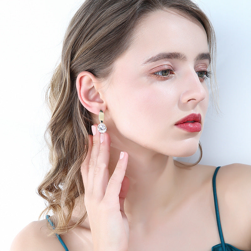 Bông Tai Tòn Teng Đá Trắng Giọt Nước Hai Màu