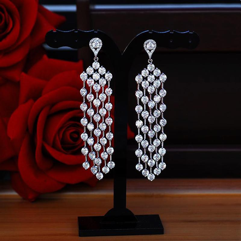 Bông Tai Tòn Teng Đá Trắng Tua Rua 5 Hàng