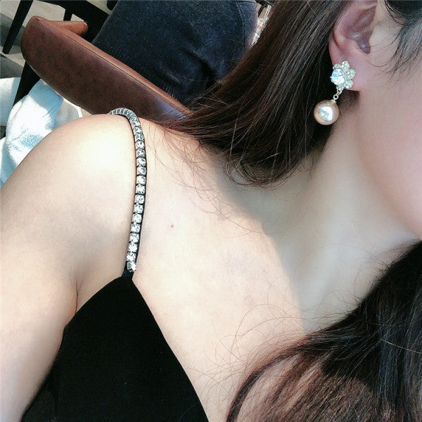 Bông Tai Tòn Teng Đá Tròn Hoa Đá 6 Cánh Trắng