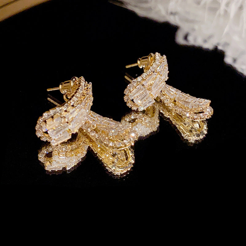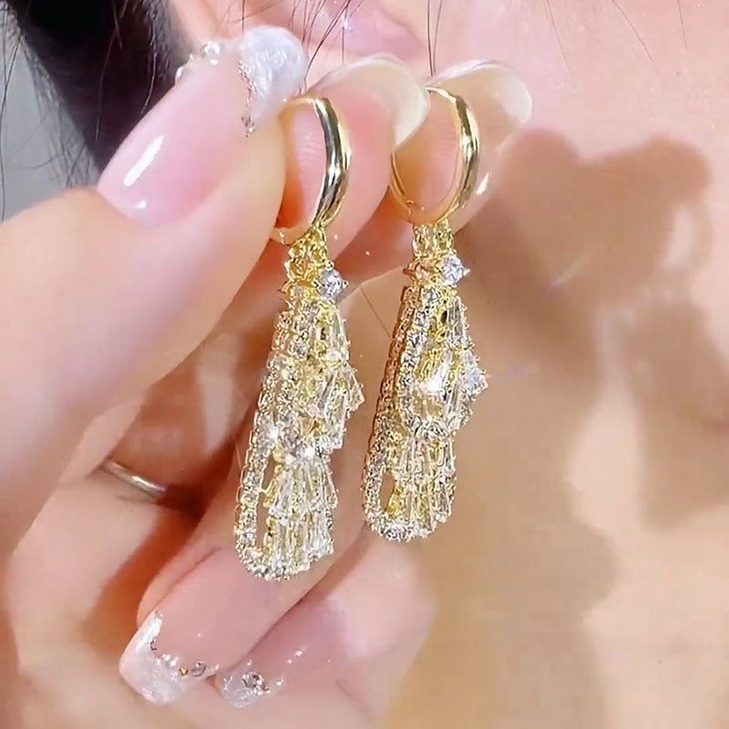 Bông Tai Tòn Teng Dáng Đuôi Công Đính Đá Trắng 2 Kiểu