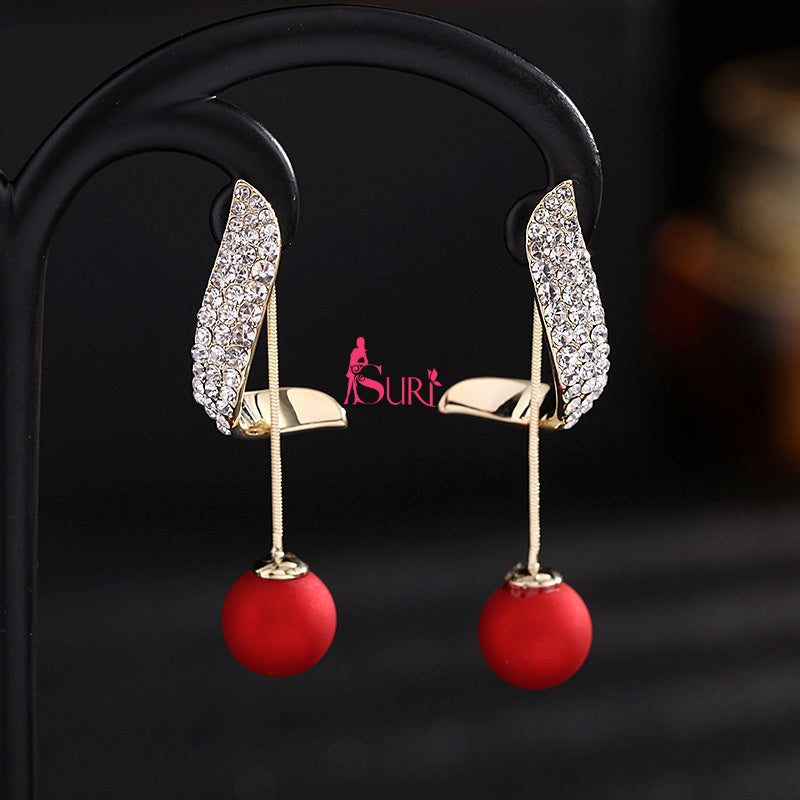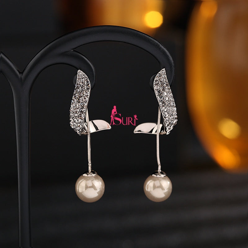 Bông Tai Tòn Teng Dáng Xoắn Đính Đá Phối Ngọc Trai Sau