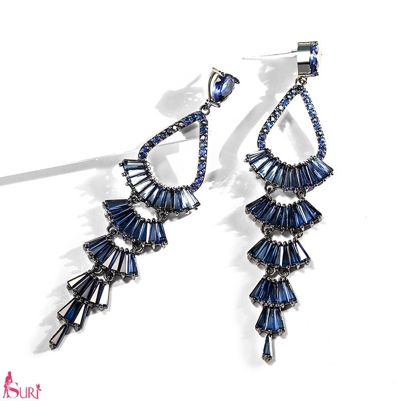 Bông Tai Tòn Teng Đuôi Công Đá Xanh Coban cao Cấp