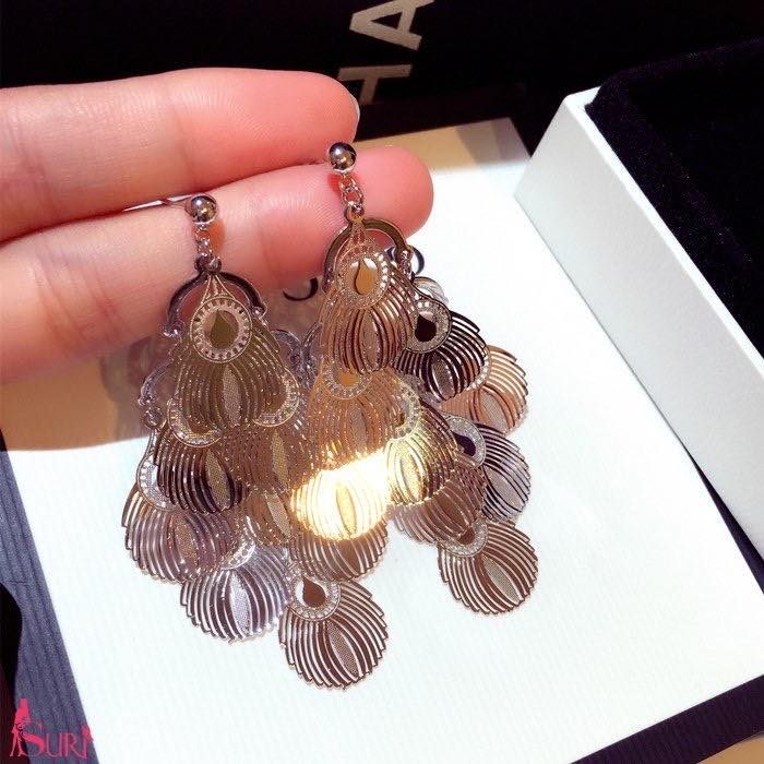 Bông Tai Tòn Teng Đuôi Công Xếp Tầng