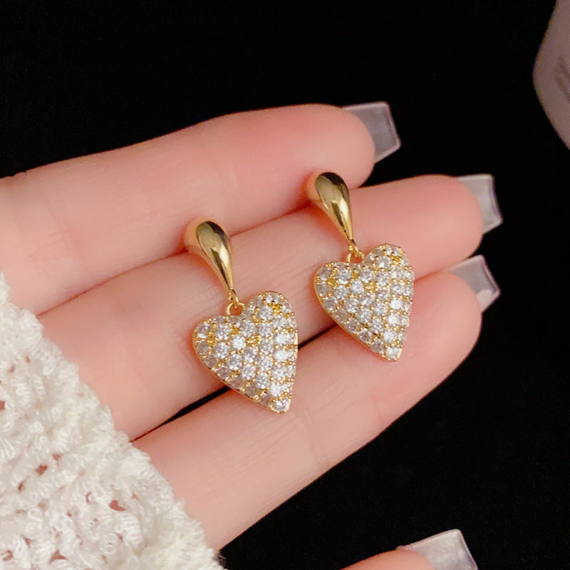 BÔNG TAI TÒN TENG GIỌT PHỐI TRÁI TIM ĐÍNH ĐÁ TRẮNG NỮ TÍNH