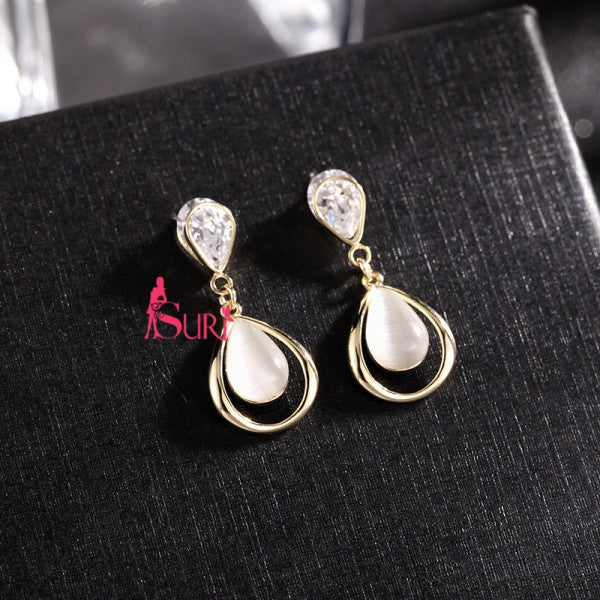 Bông Tai Tòn Teng Giọt Nước Đá Mắt Mèo Nhỏ Xinh