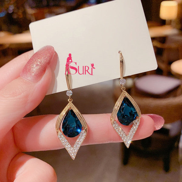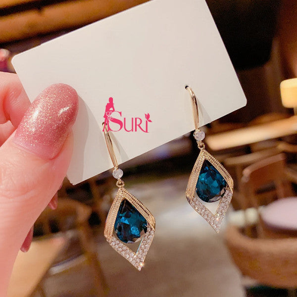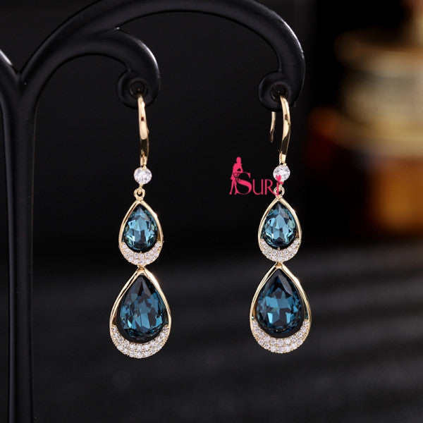 Bông Tai Tòn Teng Giọt Nước Đá Xanh Biển Cả Dạng Móc