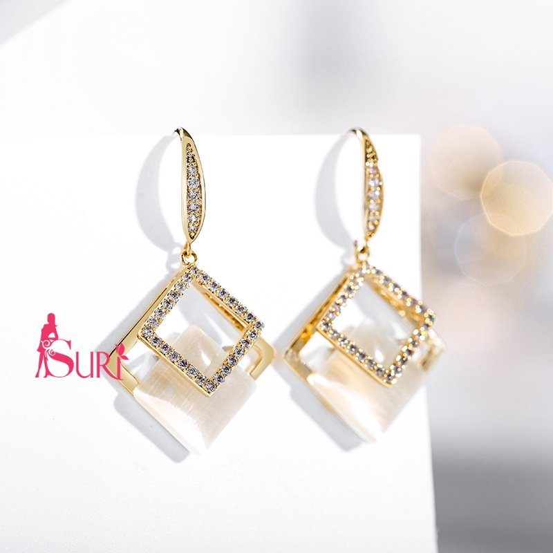 Bông Tai Tòn Teng Giọt Nước Đính Đá Mắt Mèo Dạng Móc