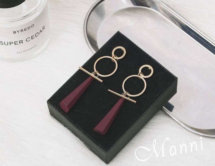 Bông tai tòn teng gỗ hình học được thiết kế theo kiểu dáng tòn teng cổ điển nhưng rất mới mẻ trong chất liệu cũng như phong cách. Sản phẩm được phối chất liệu hợp kim không gỉ mạ vàng và nhựa giả gỗ, đây chính là điểm khác biệt của sản phẩm so với tất cả các kiểu tòn teng khác. Màu đỏ đô của sản phẩm là màu của sự sang trọng nhưng không kém phần trẻ trung lạ mắt.