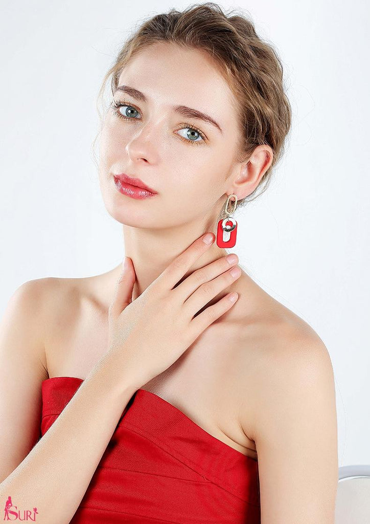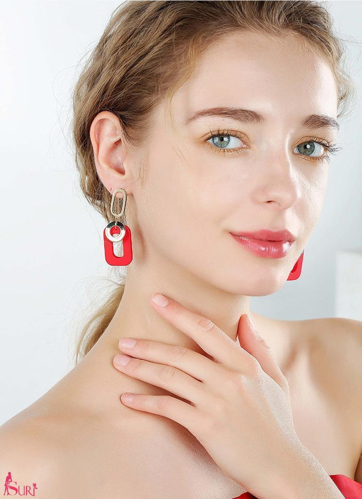 Bông Tai Tòn Teng Hình Chữ Nhật Màu